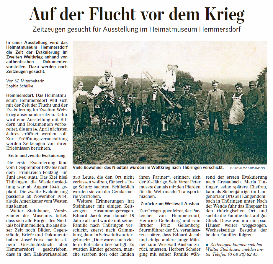 Pressebericht zu unserer Austellung 'Evakuierung im Niedtal' |