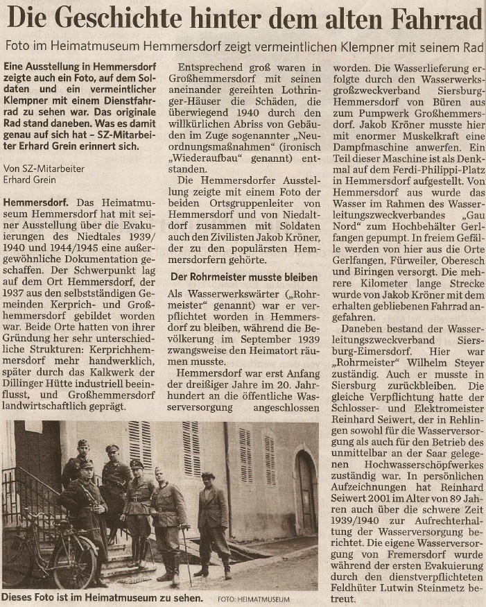 Foto im Heimatmuseum zeigt vermeintlichen Klempner mit seinem Rad - Bericht aus der SZ über unsere Ausstellung |
